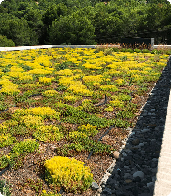 ZinCo ha creado un sistema especialmente diseñado para proporcionar un soporte vital a distintos tipos de plantas, siempre manteniendo la integridad estructural de la cubierta sobre la que se coloca. Se caracteriza por contar con varias capas, cada una con una función específica, que imitan en pocos centímetros la estructura de un suelo natural.